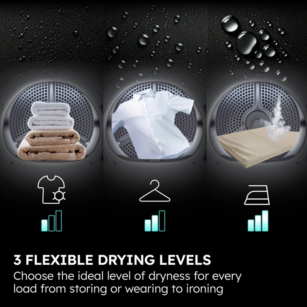 With a maximum drying capacity of 8kg, this tumble dryer is perfectly suited for busy families or individuals who demand high-performance results. Its I-Time feature offers you the flexibility to personalise the drying duration, adapting to your specific needs and preferences.