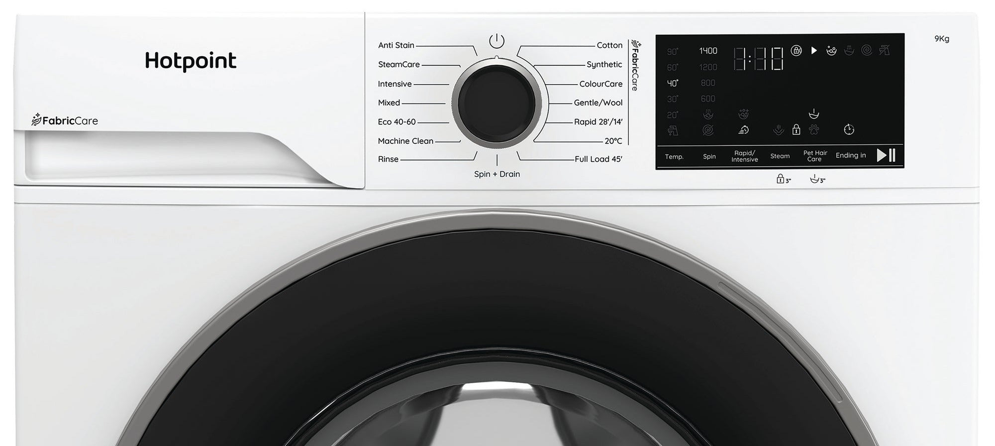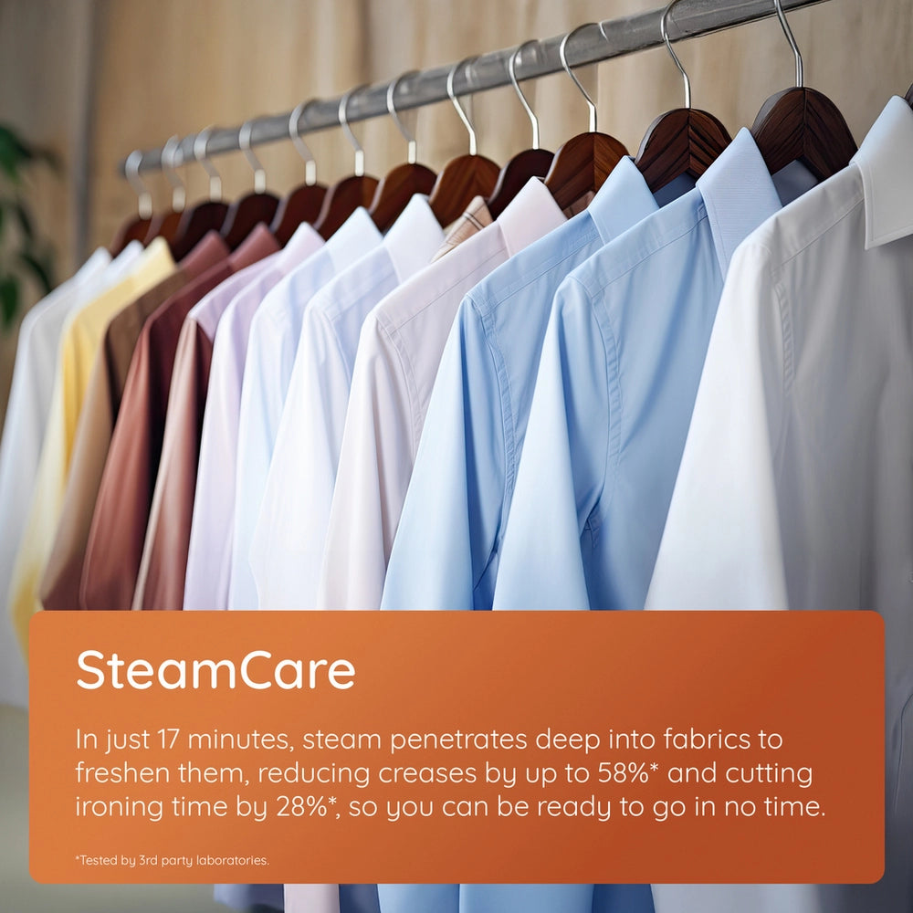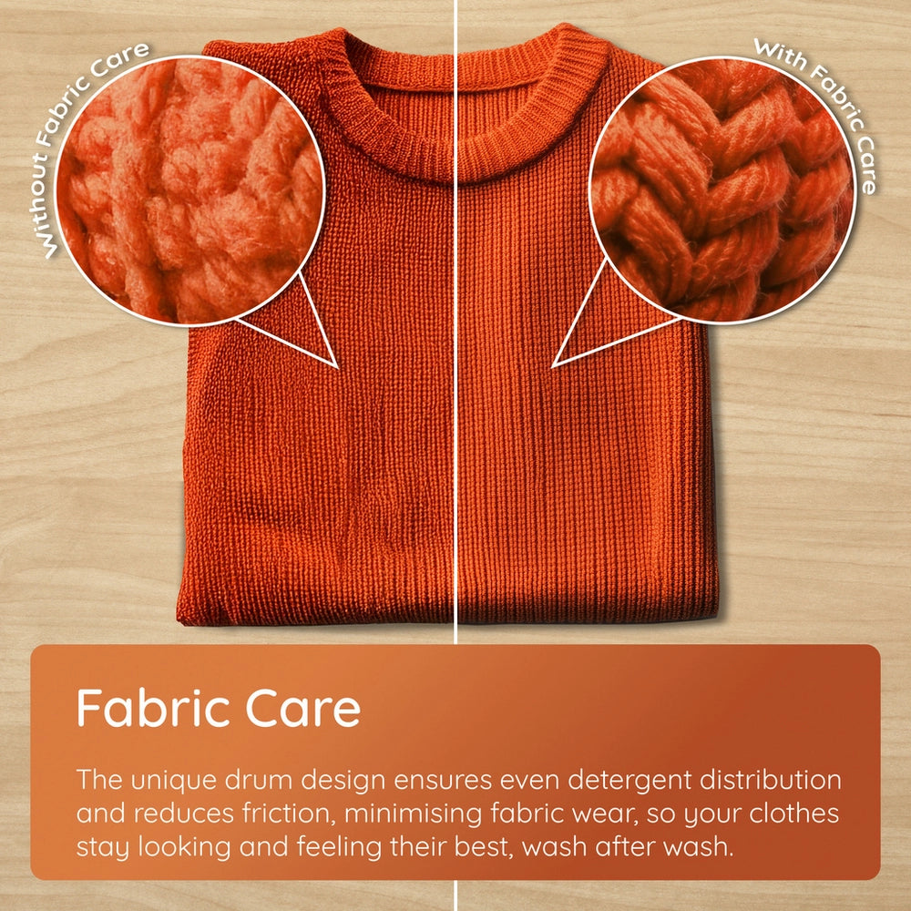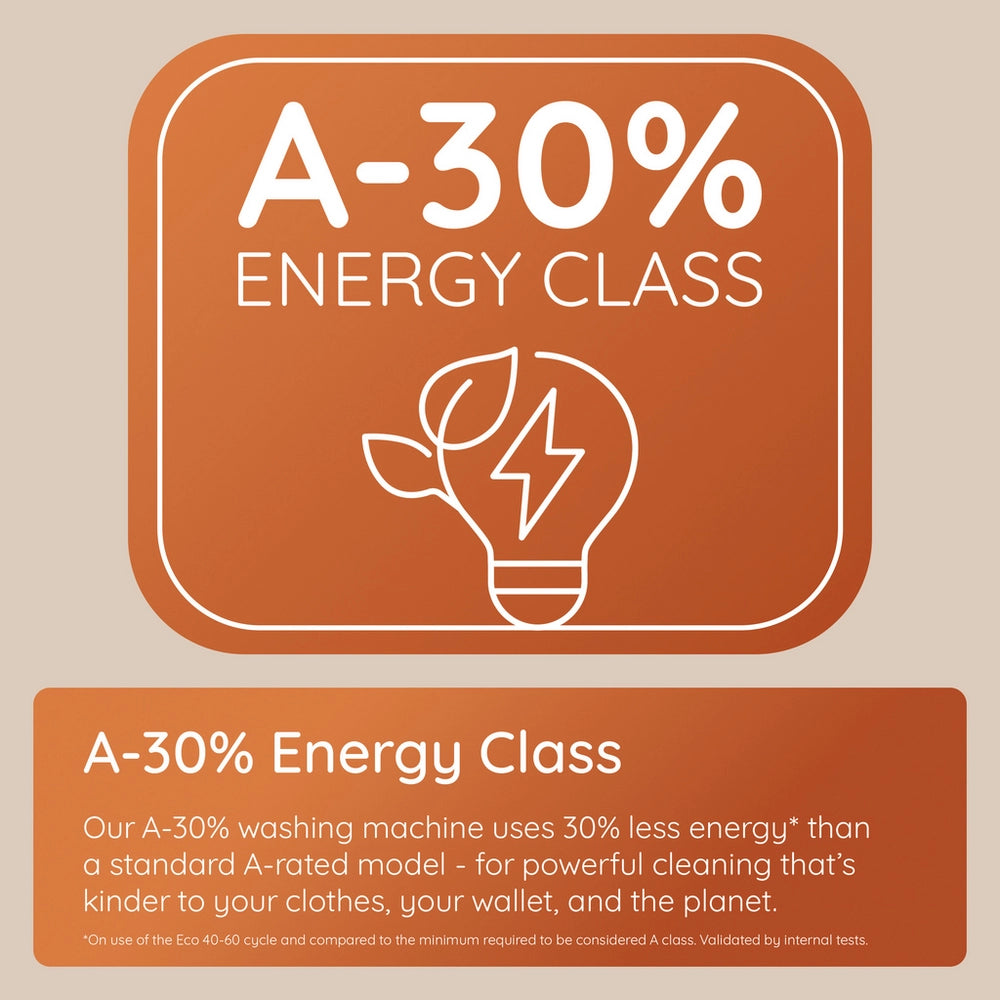 Choose from a variety of tailored washing programmes including Eco 40-60, Cotton + Steam, Synthetics + Steam, Anti-Stain, and a quick 14/28-minute wash option to fit your various laundry needs. The Full Load 45’ programme ensures powerful cleaning in under an hour, while the SteamCare function refreshes lightly worn clothes and reduces creases in just 17 minutes.