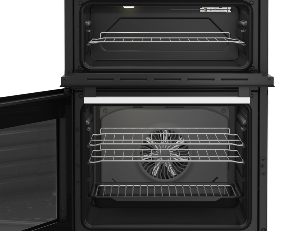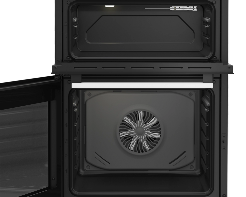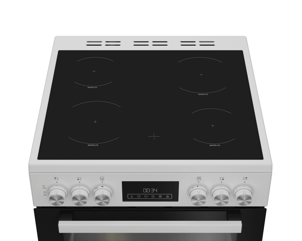 Featuring a sleek, vitroceramic hob with four efficient zones, the HKRN651W heats up quickly, allowing you to dive straight into cooking without delay. This cooker includes two spacious ovens that cater to all your culinary needs. The top cavity offers a conventional oven with grill function, boasting a capacity of 36 litres. Meanwhile, the bottom cavity is an electric fan oven with a generous 69 litres of space, making it perfect for roasting, baking, or cooking multiple dishes simultaneously, especially during family gatherings or dinner parties.