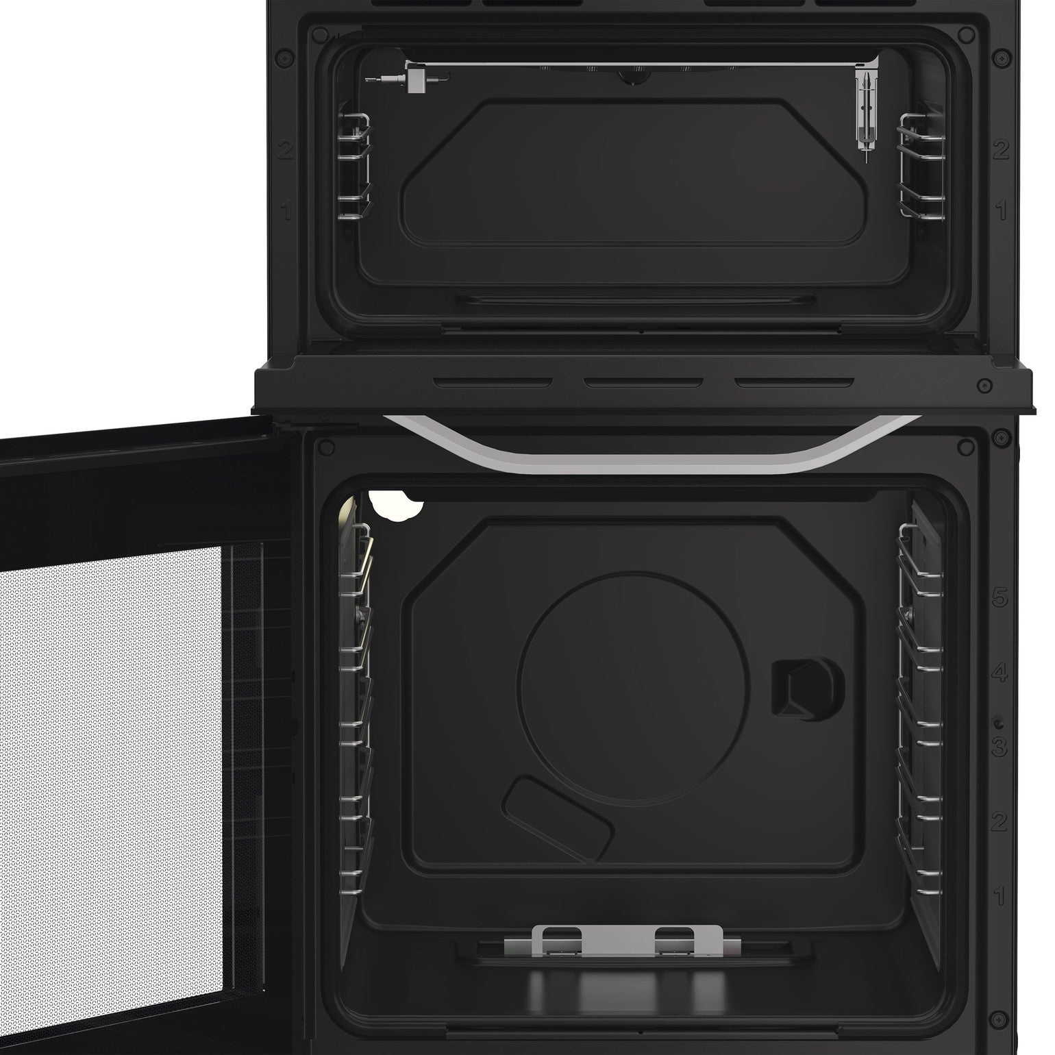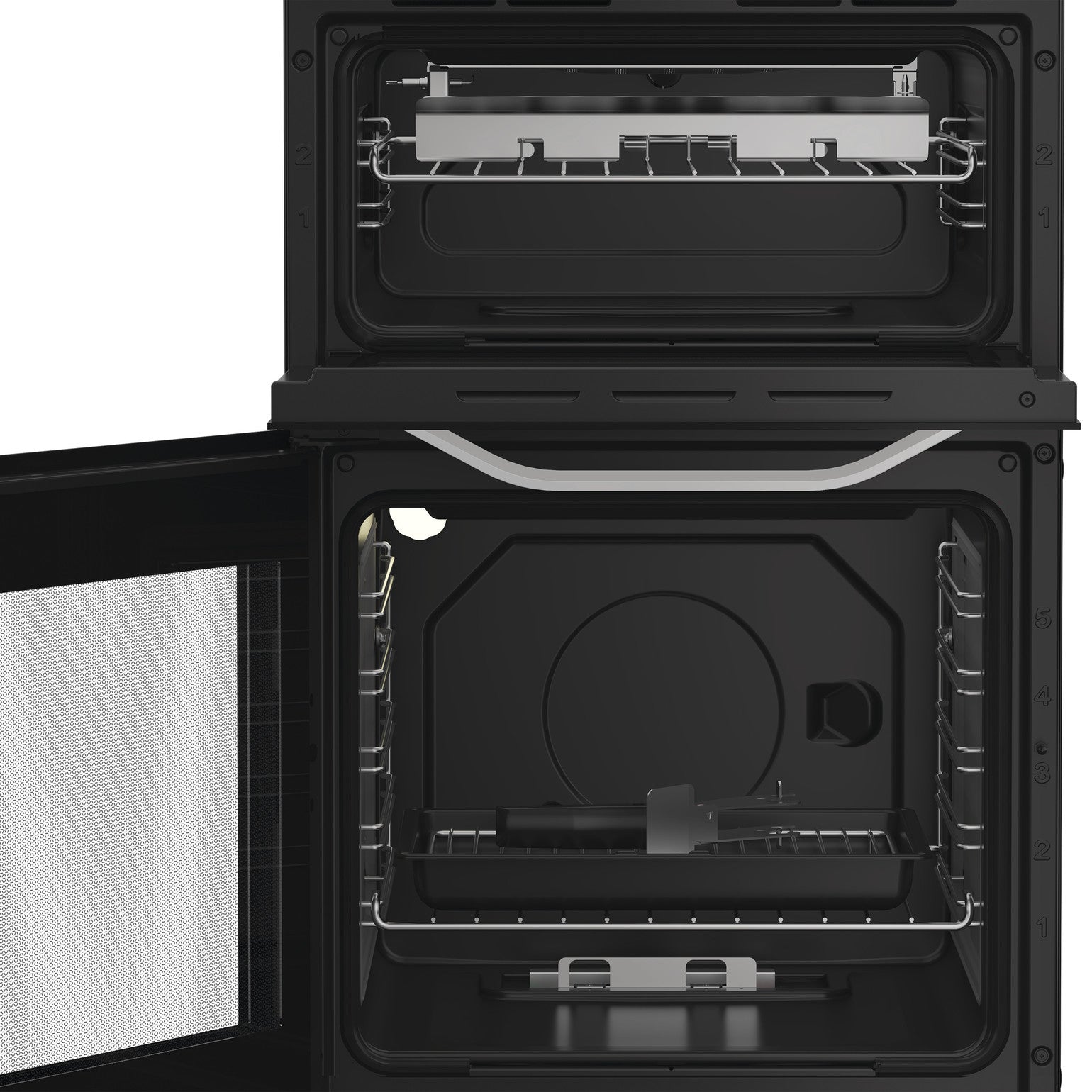 - Bottom cavity: gas conventional oven offering 59 litres (net) of cooking space, ideal for roasting a joint, baking trays, and feeding the whole family.