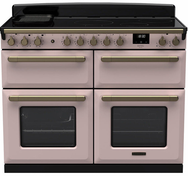 Rangemaster ESDLB110EIPPPK/AB1 Estel Deluxe BC 110cm Induction Range Cooker - Pale PInk/Antique Brass Trim
